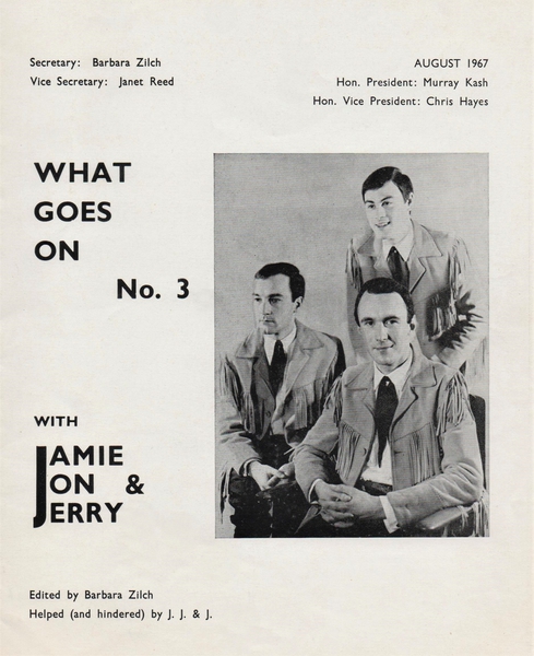 The same month, prominent Canadian actor and BBC Radio disc jockey Murray Kash became Honarary President of Jamie, Jon and Jerry's fan club 'What Goes On'. Membership went on to top 400 by the summer of that year.